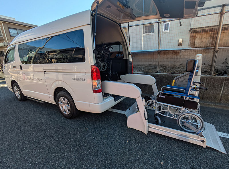 ご指定の時間にお迎えにあがります。玄関先ではなく、病室や寝室のベッド元までスタッフがお伺いし、バイタルチェックを行った上で安全に移乗介助を行います。